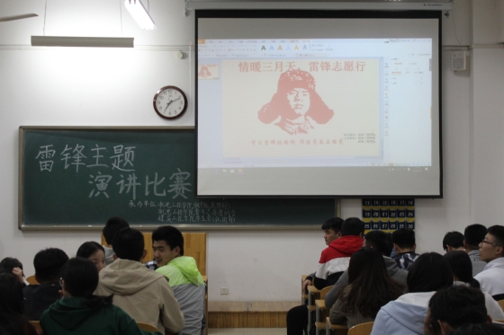 3月23日晚7点,我院于8教114教室参加了“学习雷锋精神”主题演讲比赛决赛,本次比赛由我院宣传部、秘书处、青年志愿者协会与建筑工程学院社团部共同举办,13名同学参赛。