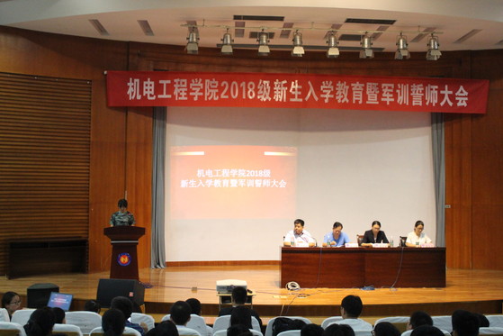 9月10日晚7点,学院在学院会堂第二报告厅召开2018级新生入学教育暨军训誓师大会,我院党总支书记张永胜,院长李宏伟,党总支副书记王丕琢,副院长黄爱芹,学生科科长宋立军,辅导员靳雪银、纪建茂以及学院的全体教师出席此次大会,2018级全体同学参加,16级17级部分学生干部负责会场秩序。