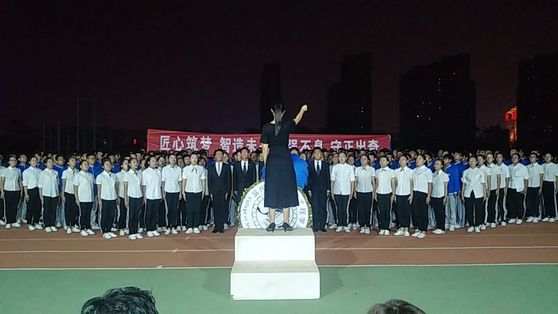 9月20日晚上7点,我院2018级新生在运动场参加全校军歌比赛,此次比赛我院全体2018级新生参加,党总支副书记王丕琢到场指导。