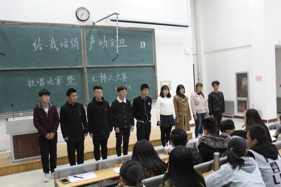 此次比赛采取歌唱和主持共同选拔的形式,此次比赛共分为四组。在同学们都入场后,比赛拉开了帷幕,当歌曲《爱情转移》的音乐一起,预示歌唱比赛的正式开始。随着比赛的进行,观众们的情绪高涨,掌声,欢呼声不断响起。期间,大学生艺术团的成员为同学们带来了精彩小品,赢得了同学们热烈的掌声,缓解了选手们紧张的心情。随后,评委对每位选手都进行了点评,指出了选手们的不足,给出了提高的意见。最后,此次比赛以表演《当你》落下帷幕。