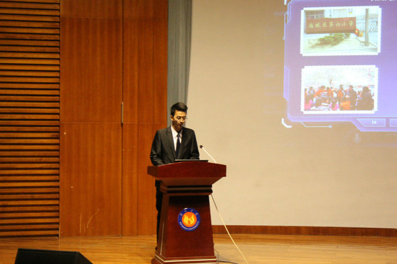 比赛开始前,我院参赛选手盖晓慧同学沉着冷静,态度严谨的进行赛前准备工作。比赛开始,首先由主持人宣布比赛规则,限时五分钟的现场陈述,从三个层面进行剖析。我院选手先介绍了自己的团队,随后抑扬顿挫地讲述了三下乡与小孩子做关于科普游戏的事情,在游戏中让孩子们体会科技的神奇。我院选手呈现出的丰富多彩的志愿服务项目,获得阵阵掌声。经过几轮激烈比拼后,由评委老师进行比分。最后,在这次比赛中我院盖晓慧同学获得89.4分的优异成绩。