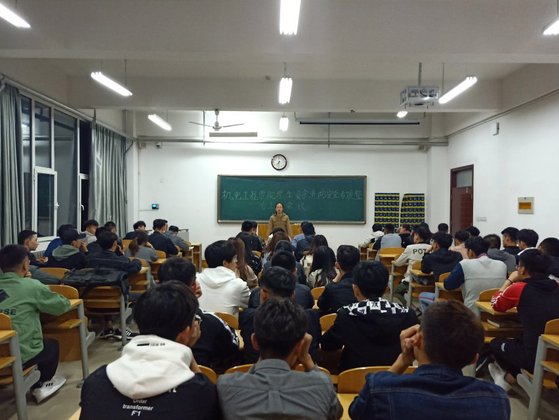 为进一步加强学生宿舍消防安全管理,杜绝学生宿舍发生消防安全事故,保障学生人身安全和财产安全,深入贯彻落实山东省教育厅《关于开展“狠抓落实 强化学生宿舍消防安全专项整治”行动的通知》文件精神。我院于4月15日晚七点半在八教101开展宿舍消防安全专项整治工作会。辅导员靳雪银老师主持此次会议,16级、17级、18级全体学生干部参加此次会议。
