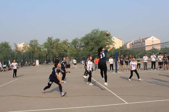 一声哨响之后,展开了精彩的比拼。队员们各施绝技,发球、起跳、拦网、扣球,每一次精彩的传球与得分都引来欢呼阵阵,“加油、加油”的助威声铿锵有力,此起彼伏,队员们充分发挥出自己精湛的个人技术和熟练的战术配合。比赛场上,我院男排个个精神抖擞,配合默契,气氛文明热烈,赢得了场边围观学生的阵阵喝彩,连续赢得两场比赛的胜利。在我院女排与信息工程学院队员对决的过程中,对方变换进攻战略,攻势十分猛烈,由于我方发球失误,对方趁势而上接连得分,但我方队员沉着冷静,将比分慢慢追平,精彩的扣球赢得阵阵掌声,比赛再次进入胶着状态,最后因我方接球失误,我院女排与胜利擦肩而过,但比赛所收获的友情是无法磨灭的。经过两天的激烈角逐,5月12日上午,预赛圆满结束,我院男排以小组第二的成绩进入决赛,女拍虽然没有进入决赛,但获得了优异成绩。