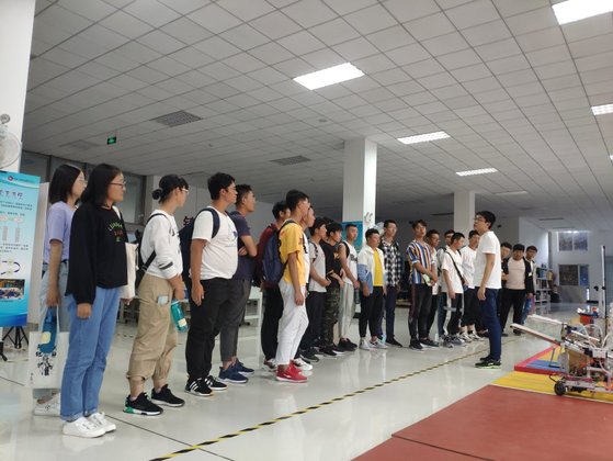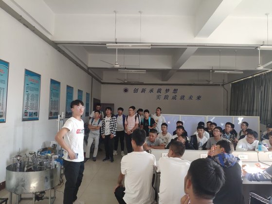 参观开始前先集合排队来到实验室,将六个班级分为三组,先后参观机电产品创新设计实验室,工程图协会和人工智能实验室。冯川老师向同学们详细介绍了实验室成立的时间,获得的成绩以及实验室的优秀作品。实验室成员还分享自己在实验室的收获和感受,并带领同学们参观实验室的优秀作品展,拓宽了同学们的眼界。为了让同学们有更加深入的了解,参观过程中有实验室成员讲解,新生们积极地提出自己的疑问,实验室成员耐心地一一做出回答。之后,实验室成员还将展品启动,并在实验室成员的指导下,让新生们亲自动手操作,使得新生们对作品有更加直观的认识。