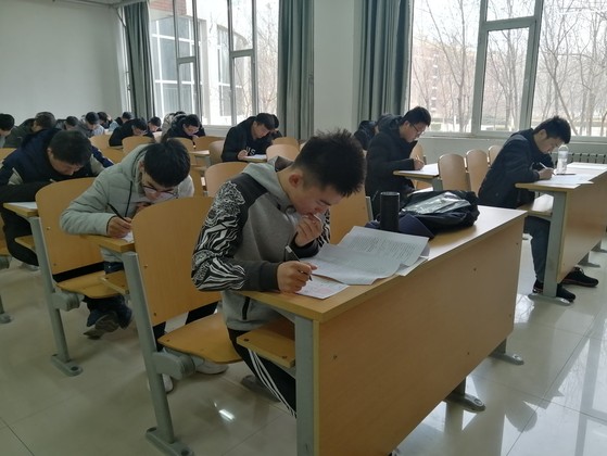 同学们都提前进入考场积极备考、认真准备。考试开始前同学们统一上交手机、课本等与考试无关的东西,认真遵守考试纪律。九点准时开考,学习部干事一一分发试卷,考生们拿到试卷后迅速进入答题状态,考生们仔细审题,在试卷上书写答案,只听见考场中沙沙的答题声,同时学习部的干事们流动巡查,保证考场纪律。考试过程中,同学们一丝不苟地作答,希望能够用这次模拟考试来更加深入的了解自己的优点以及不足。本次模拟考试严格按照真正考试时的流程进行,是为了提前让同学们感受一下考场的氛围,在考试时能够完全发挥出自己的实力,尽量避免因过度紧张而造成的发挥失常现象的出现。考试结束后,全体同学放下笔并停止作答,等待学习部干事们收考卷及答题纸。最后在学习部干事们的引导下有序离开考场。