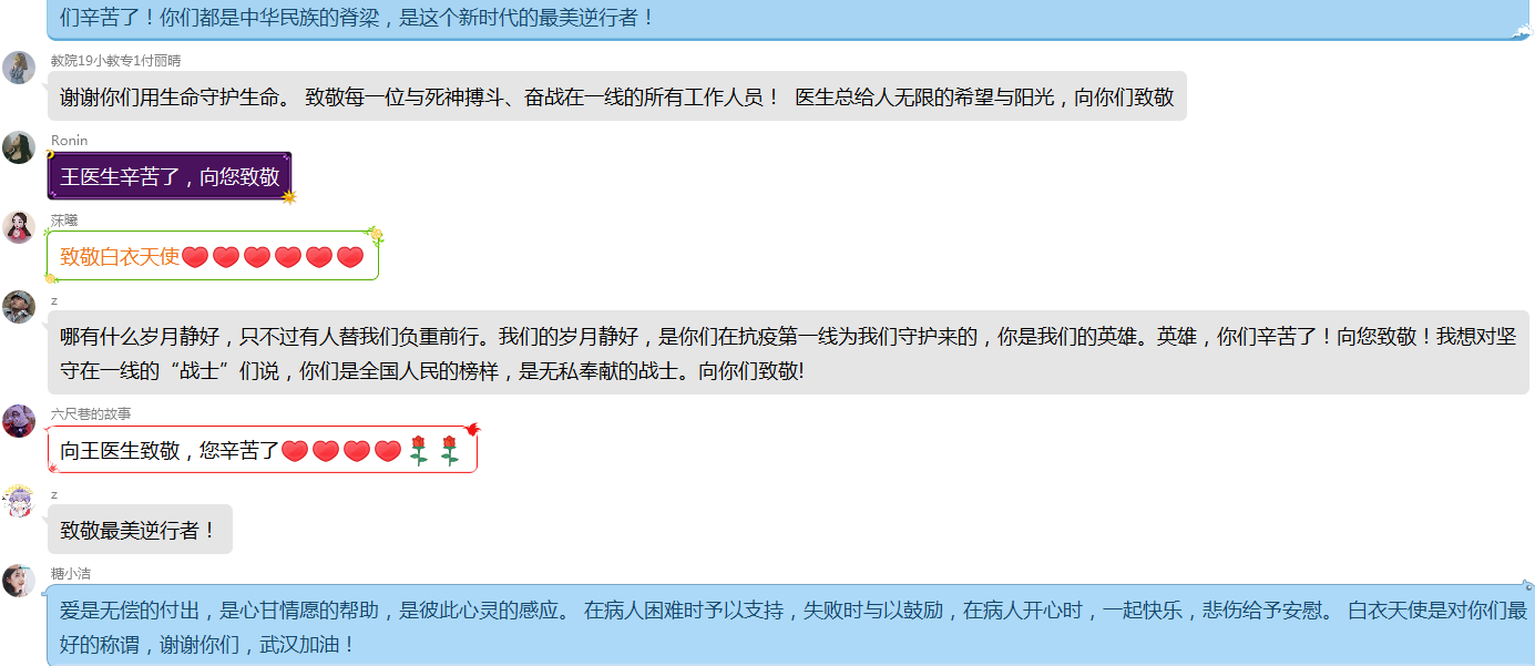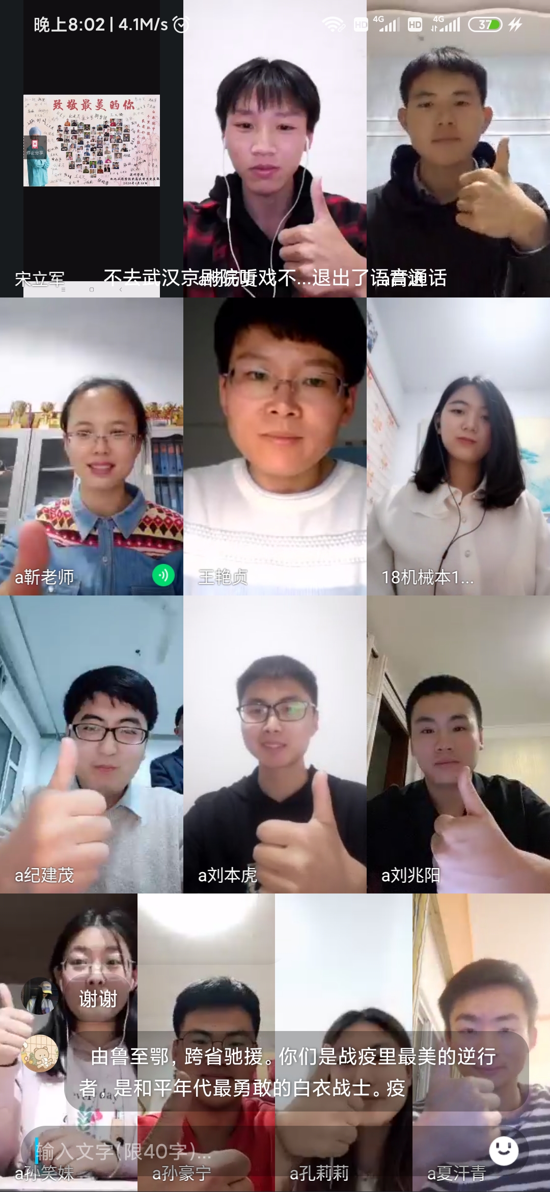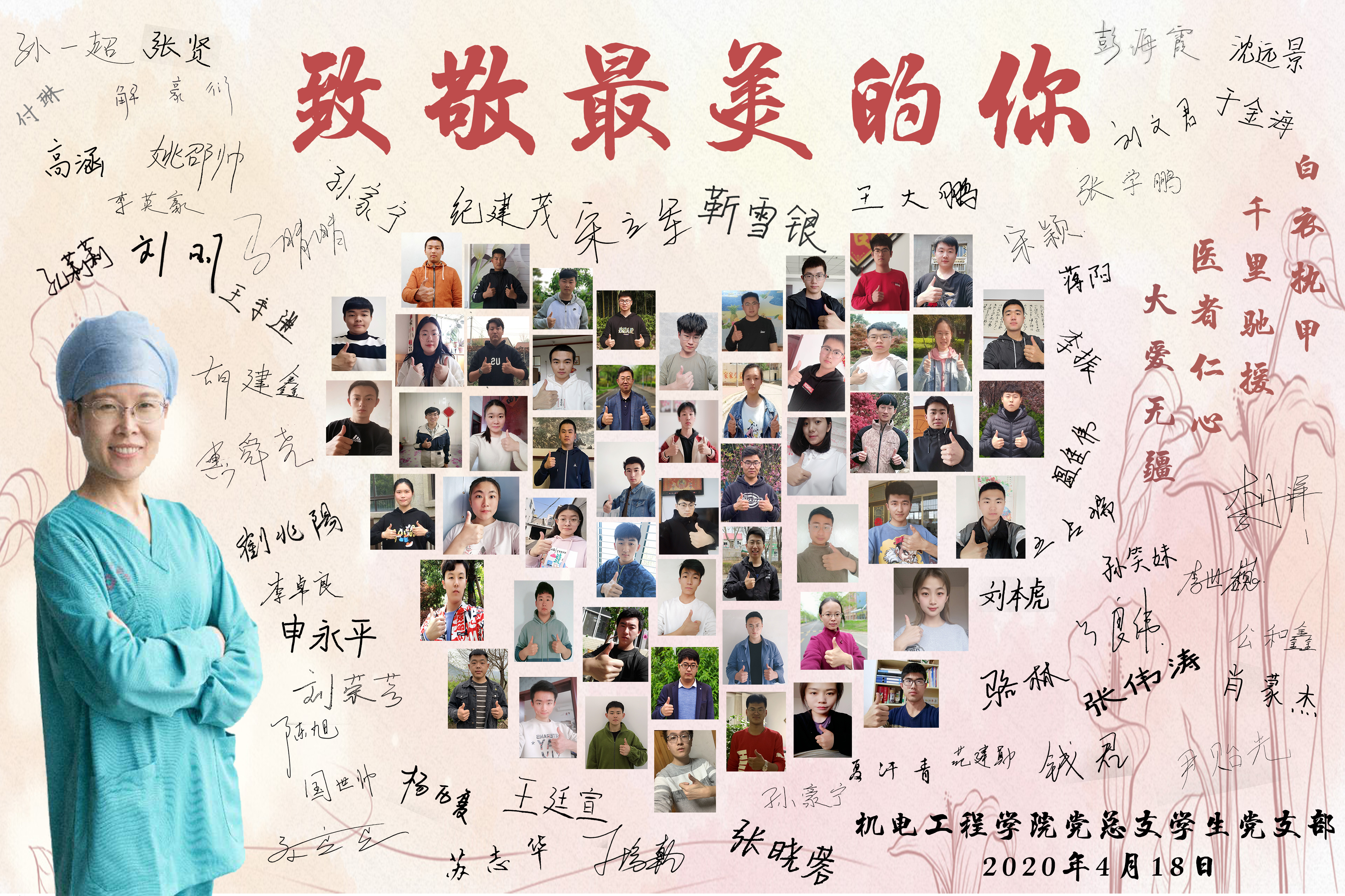 与英雄的对话,让师生们深刻地体会到:这世上没有从天而降的英雄,只有挺身而出的凡人,哪有什么岁月静好,不过是有人替你负重前行。他们在深受教育的同时,纷纷通过视频连线致敬英雄,表达了对逆行抗疫英雄的感激之情。学生党员刘本虎说道:“您将生死置之度外,决心打赢这场硬仗的时候,您就已经成为了我们的英雄,您承受着巨大的心理压力和高强度的工作负荷,却毅然坚守岗位,让我深深震撼、深深感动,因为你们的奋战,才有我们的心安,真心谢谢您,向您致敬”。机电工程学院学生党支部向王艳贞送上了带有全体党员点赞照片和电子签名的致敬卡片,向最美逆行者致以了崇高的敬意。