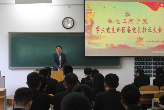 2020年10月30日中午,我院于八教101室召开了学生党支部预备党员转正大会。学生党支部全体成员出席到场参会,会议由学生党支部书记宋立军老师主持召开。