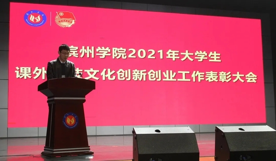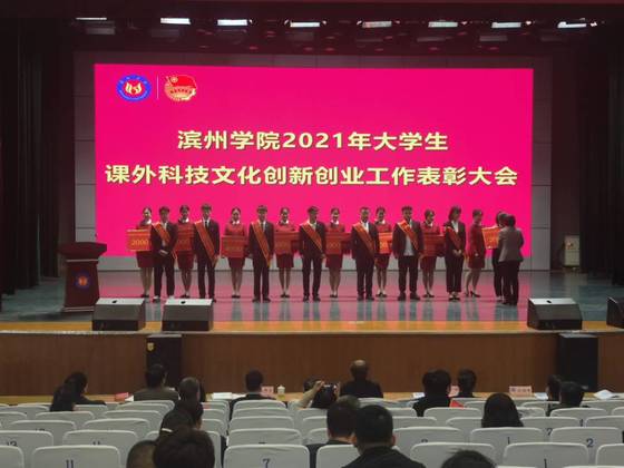 4月6日下午,滨州学院2021年大学生课外科技文化创新创业工作表彰大会在学苑会堂第二报告厅召开,机电工程学院党总支书记王丕琢、院长李宏伟、辅导员宋立军及受表彰的教师代表和学生代表参加。与此同时,由滨州学院团委主办、机电工程学院承办的大学生研究训练计划SRTP项目成果展在学苑会堂广场举行,共吸引了约三千余名同学参与展览。
