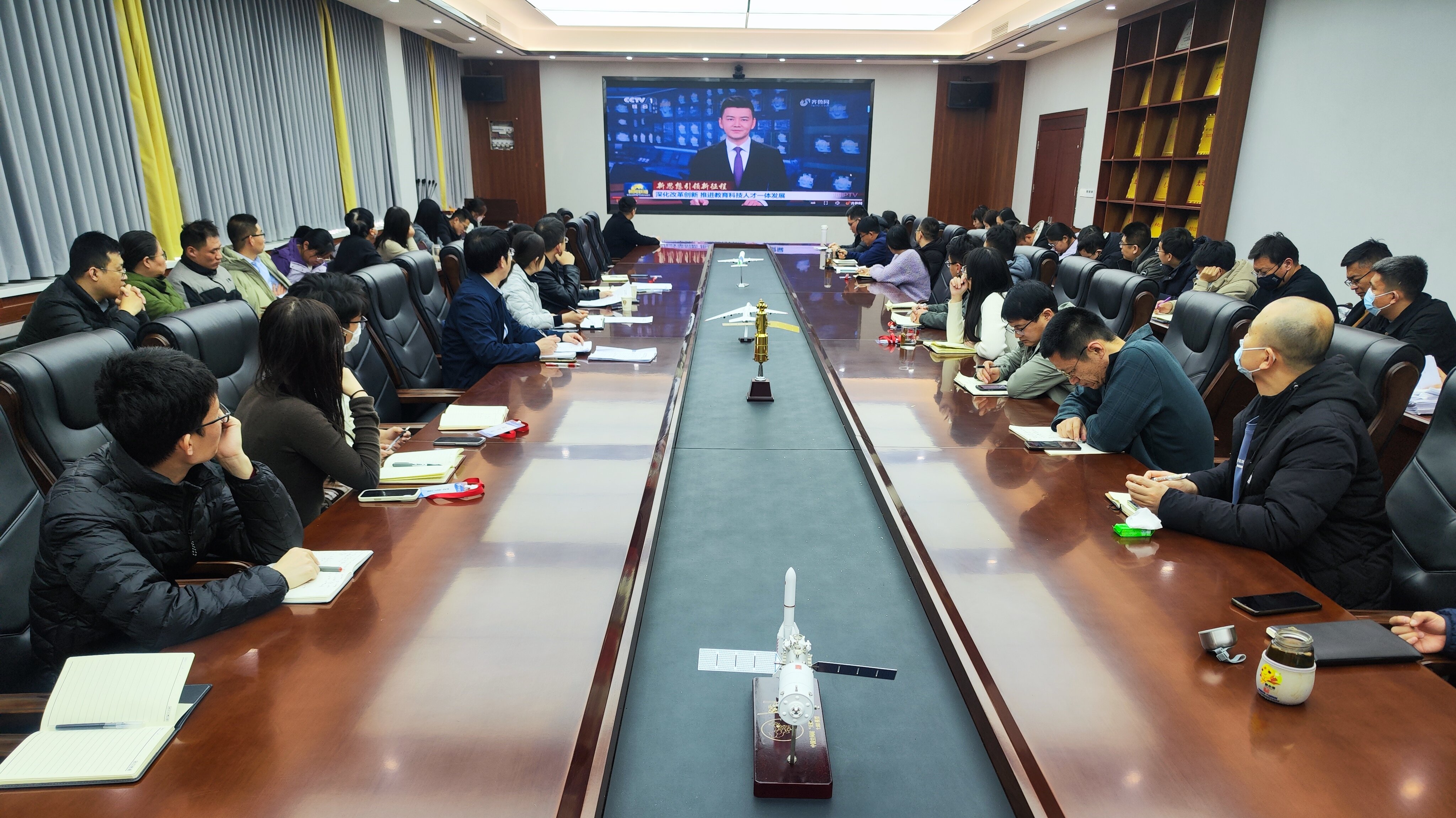 1月9日下午,航空宇航与机械学院在学院会议室组织全体教职工集体学习会,集中收看中央电视台《新闻联播》关于“深化改革创新 推进教育科技人才一体发展”的专题新闻报道,并深入学习习近平总书记关于教育、科技、人才工作的重要论述精神。全体教职工参加学习。