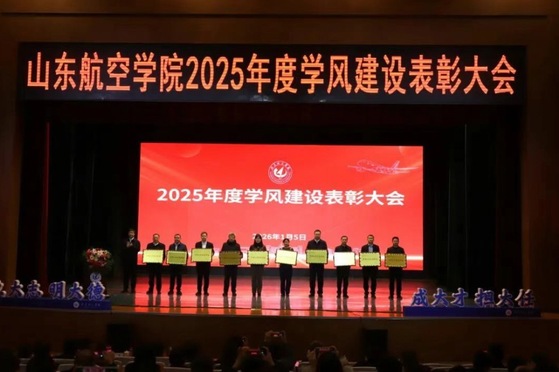 1月5日,山东航空学院2025年度学风建设表彰大会在学苑会堂隆重举行。航空宇航与机械学院荣获“2025年考研先进单位”荣誉称号,学院师生代表多人登台领奖,展现了航机学院在学风建设和人才培养方面的卓越成果。