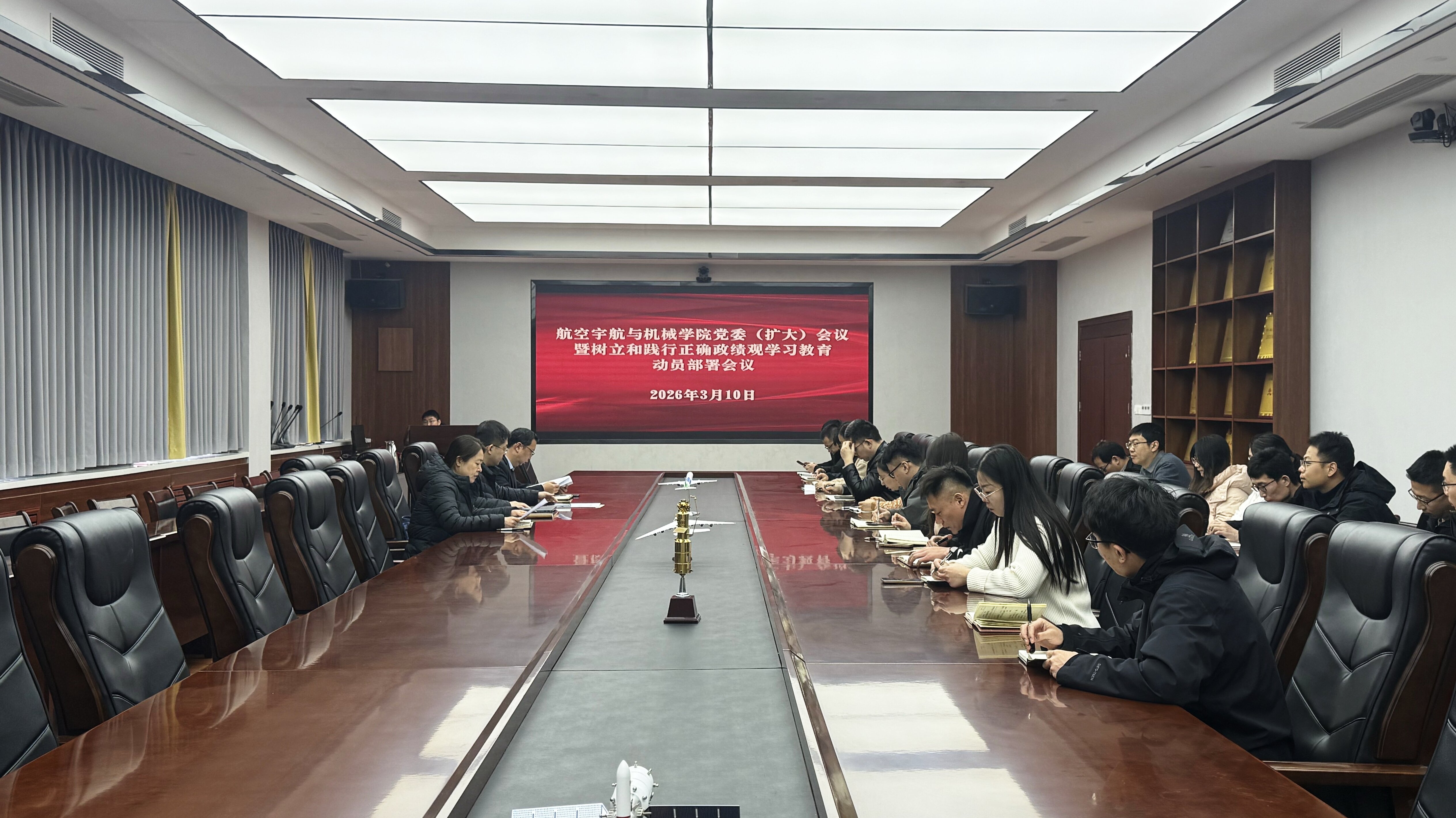 为深入贯彻落实中央、省委和学校党委工作部署,切实引导全院党员干部树牢正确政绩观,把学习成效转化为推动学院高质量发展的实际行动,3月10日,航空宇航与机械学院召开党委(扩大)会议,部署启动树立和践行正确政绩观学习教育。学院党委班子成员、各党支部书记、各科室负责人、党员代表参加会议。